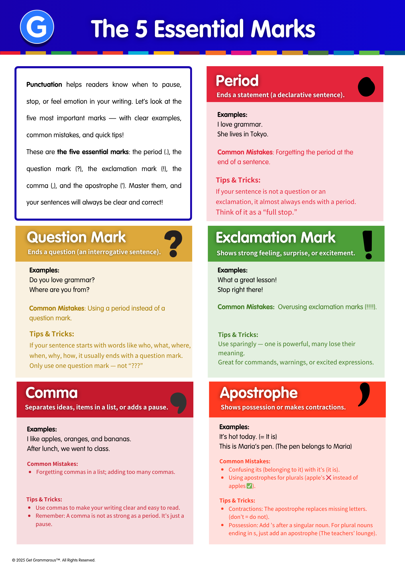 Learn periods, commas, question marks, exclamation marks, and apostrophes in a simple way.