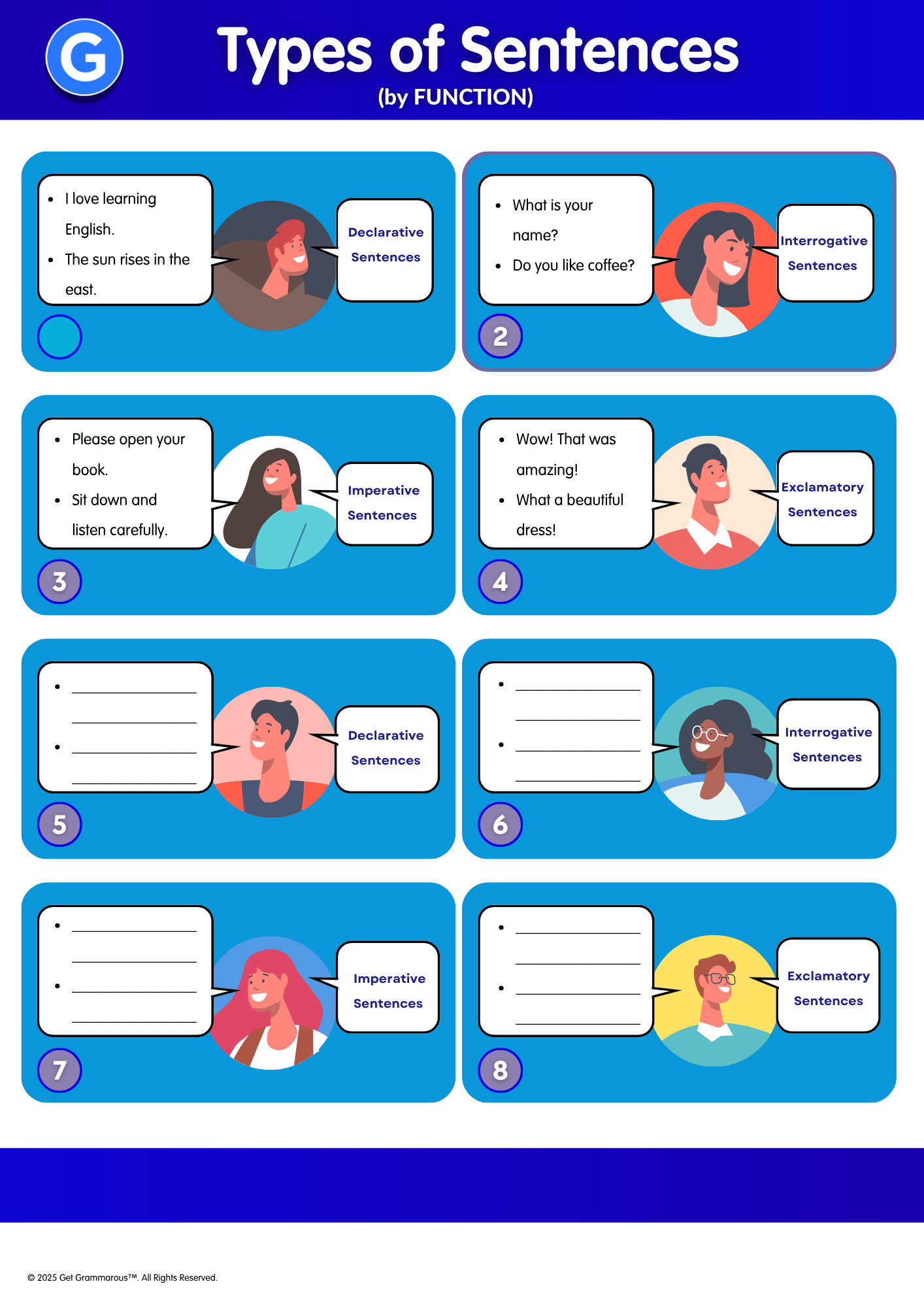 Understand statements, questions, commands, and exclamations.